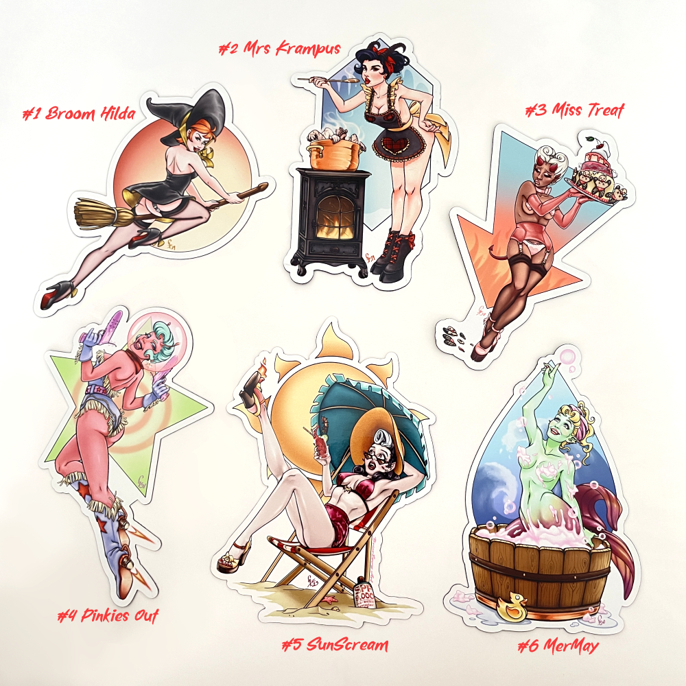 Die-cut magnets from Briar Crow's Monster Girl Pinup Series.