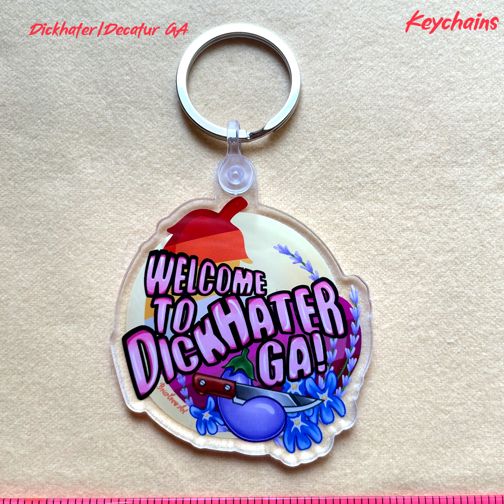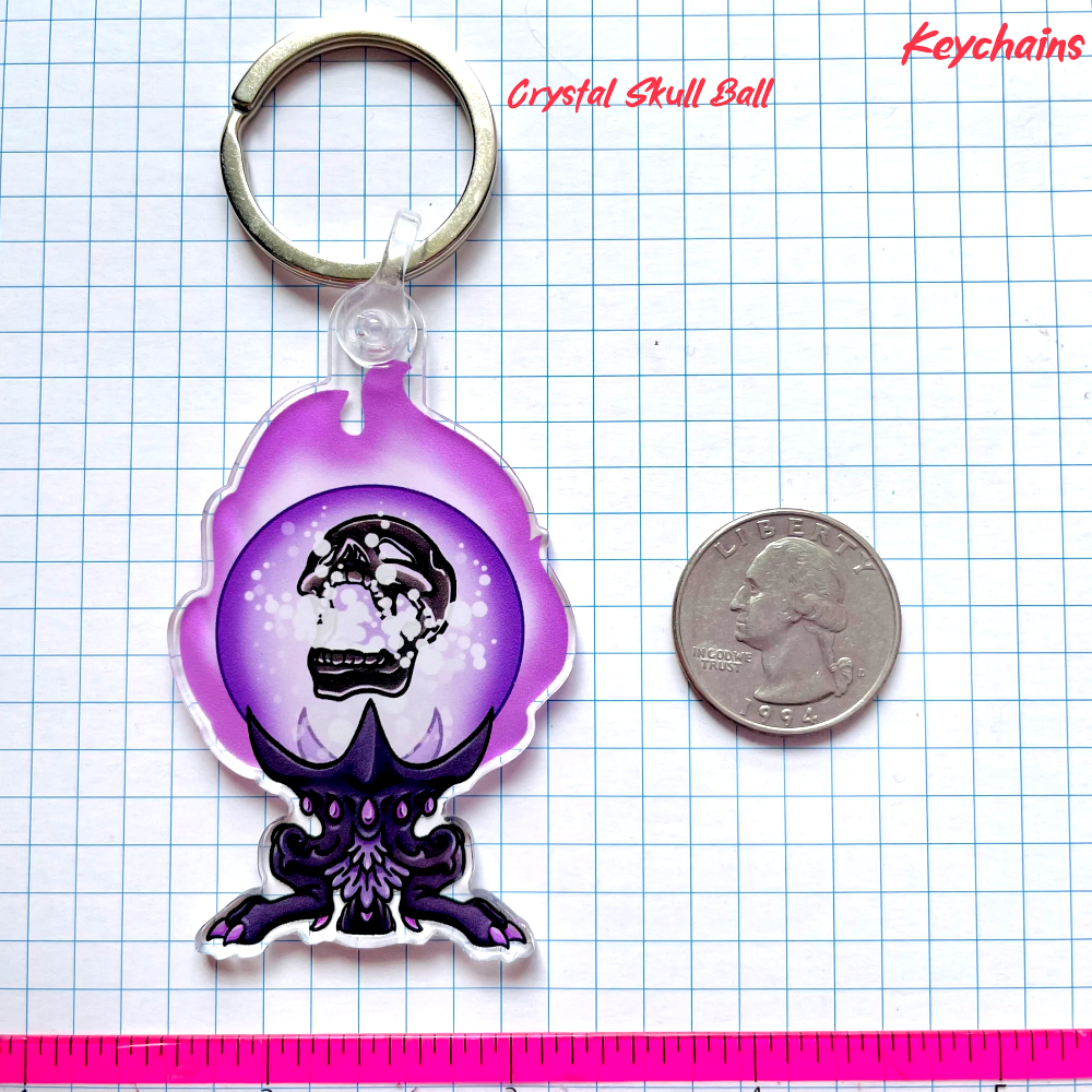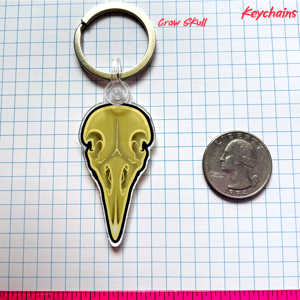 Die-cut keychains are approximately 2" x 2" some variances in width and height depending on design. See photos for an accurate scale.