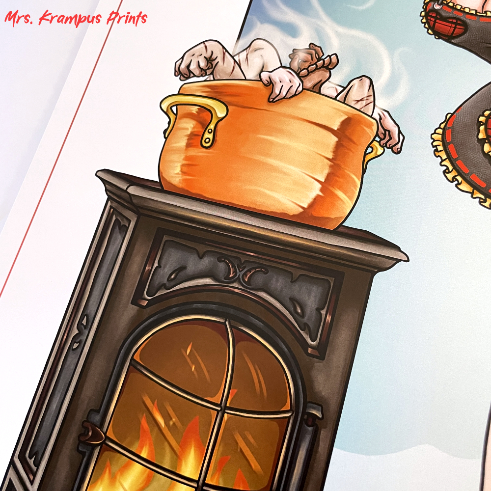 "Produced as a tribute to that European folk horror we all know and love during Christmas time; Krampus! If Santa gets to have a wife, why not Krampus? She's a suzie homemaker of sorts and LOVES to cook the most devilishly delicious feasts. Her secret is a good hearty stock made from the best of the worst misbehaving children."